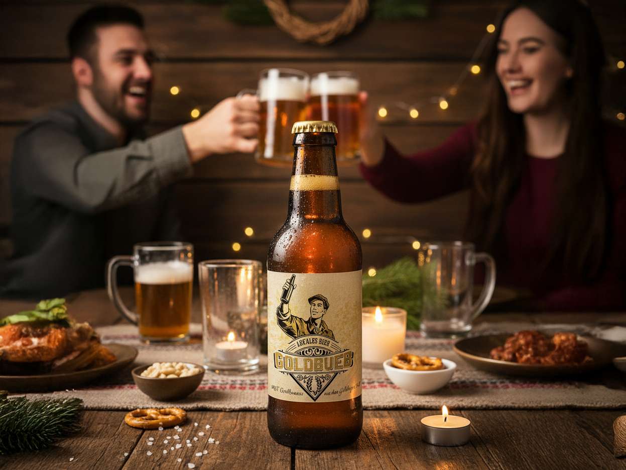 Der "Goldbueb" ist mehr als ein Bier, er ist ein Stück Heimat. Die Idee dazu kam an der Hauptversammlung 2025 von einem engagierten Partner des Goldingertals. Aus der Idee wurde ein Konzept und im Herbst 2025 folgte der offizielle Startschuss für dieses einheimische Bier.
