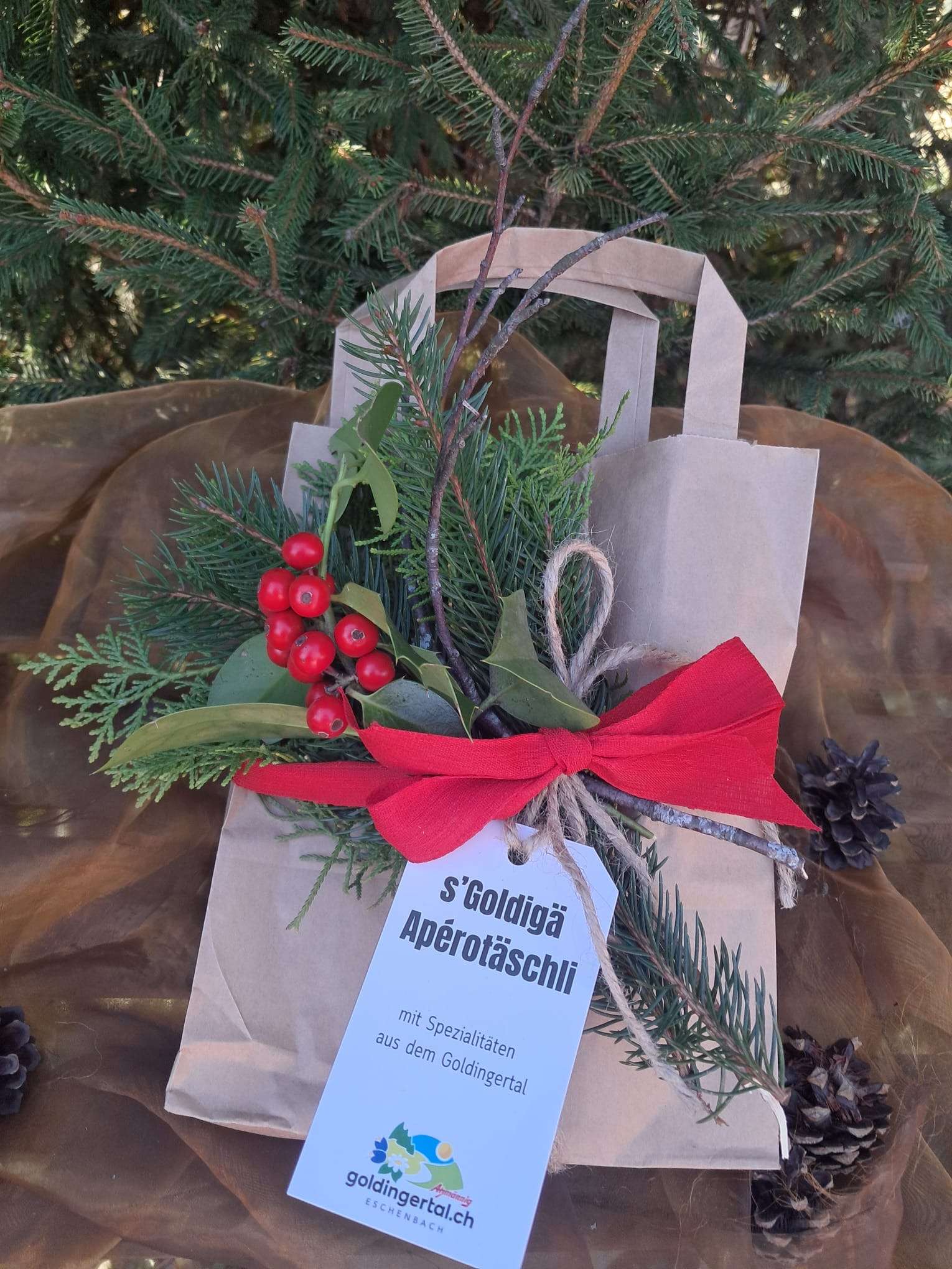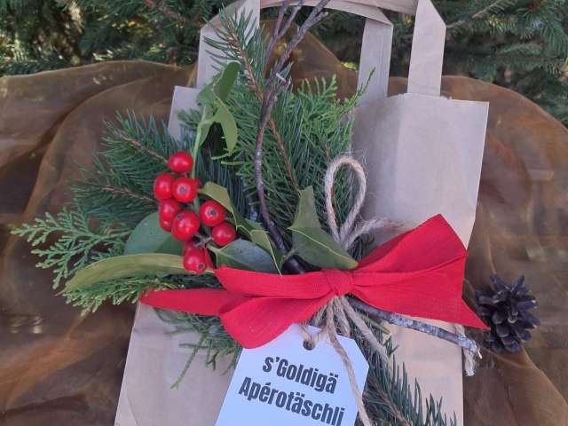 Mit dem Kauf eines Apérotäschli unterstützen Sie "Goldingertal Eschenbach" mit CHF 1.-. Mit diesem Beitrag pflegen wir die lokalen Perlen.