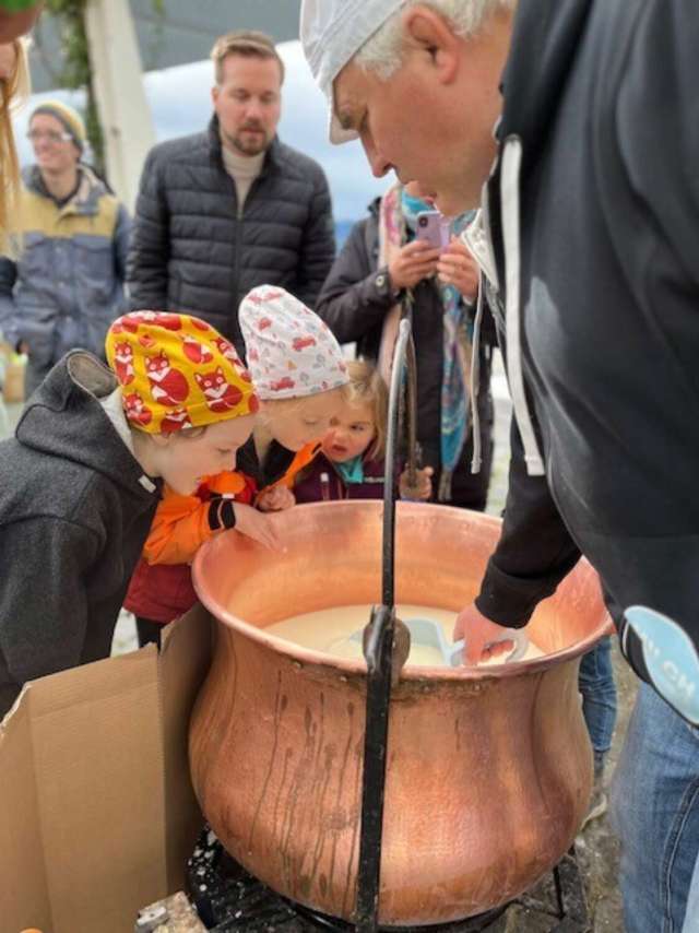 Erlebe live, wie im grossen Chäs-Chessi Käse entsteht, koste dich durch Raclettes und Spezialitäten von unseren Partnern Käserei Pfister, Käserei Sutter, Archehof Rüegg, Kräutersalz... und mehr, Widmers Hofladen und Maschentraum.